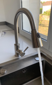 FLEXIBLE PULL DOWN SPRAYER HEAD: 1.5 m PX hose, pull out spray head, expanding washing area until 80 CM SQUARE; 360°SWIVELING TAP can be switched between 2 sinks, make cooking more efficient and sanitary